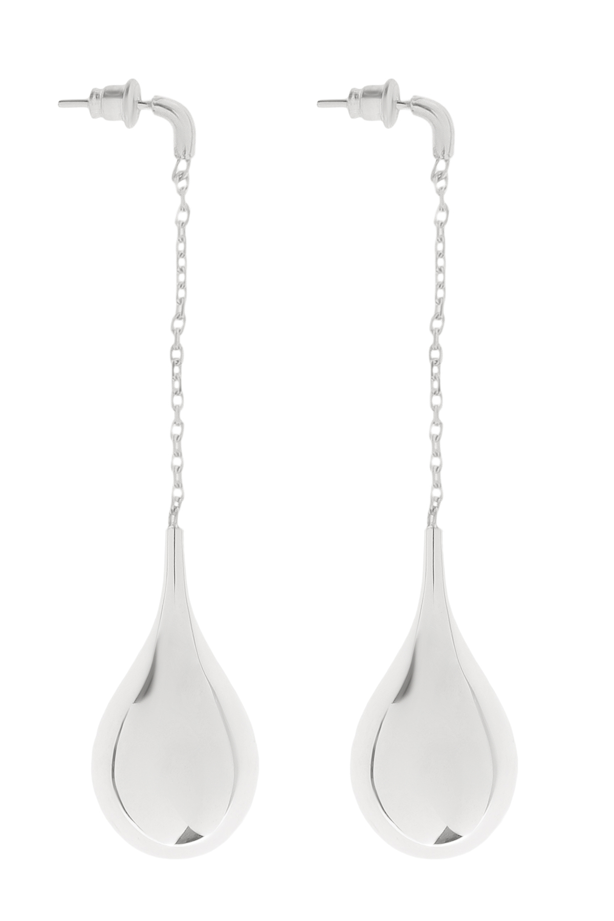 Forming a synergy between contemporary design and timeless classics, Moule presents Drop Earrings. Handcrafted from sterling silver, the pair fastens with push back closure and is characterized by carefully strung chain links which are accentuated by water drop charms.
