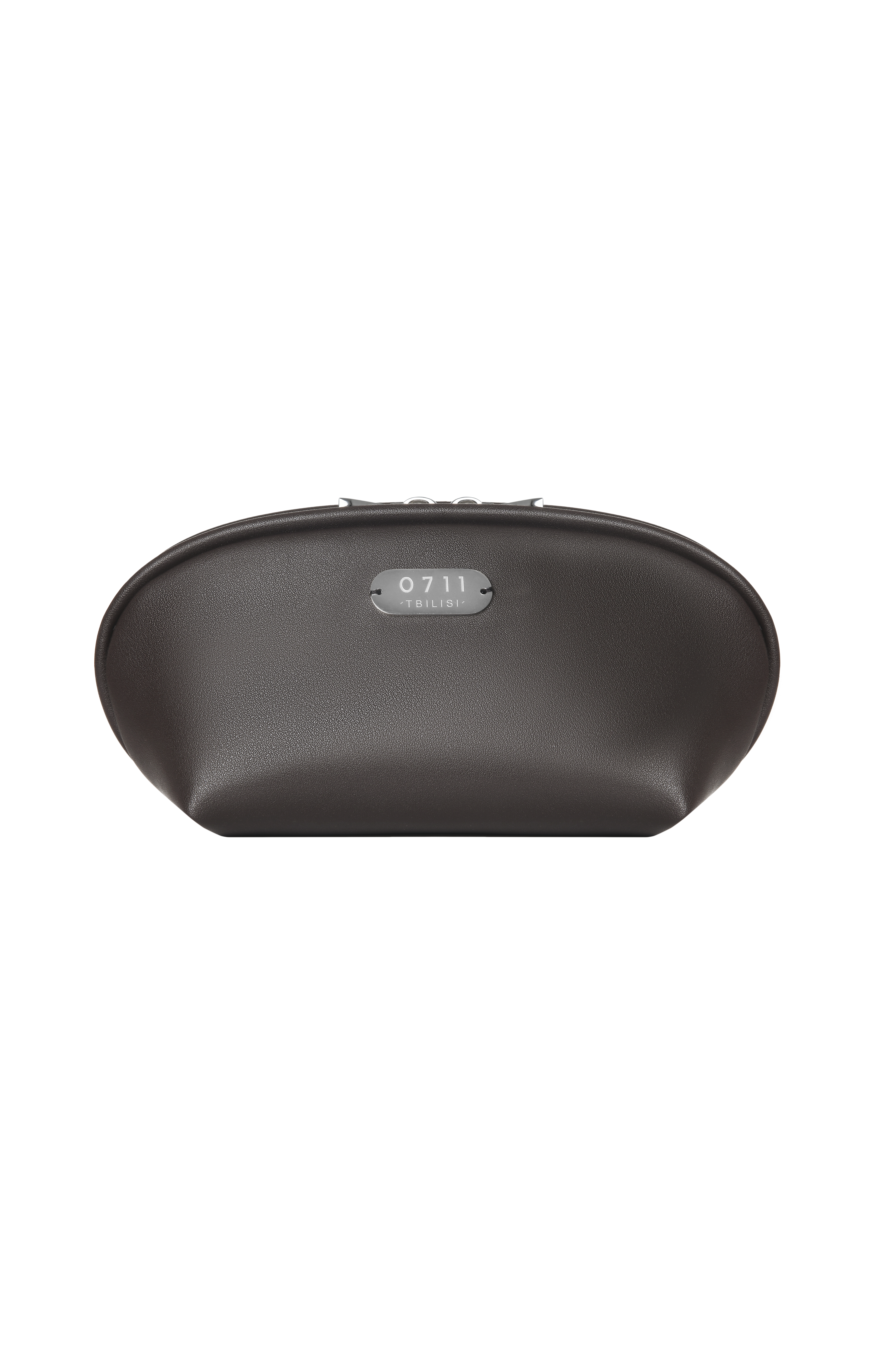 Chocolate cosmetic pouch with signature zip closure, logo at the front & soft corners.